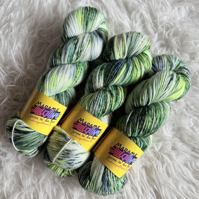 Madame Guillotine adore se balader l'été à Rougnat dans la Creuse, pour les portes ouvertes de la filature Fonty. Elle y recueille des écheveaux qui ne satisfont plus les standards de la filature pour les chérir avec des pigments et vous les proposer ensuite.