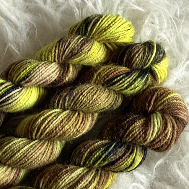 À votre disposition, 20 grammes de laine suffisante par exemple pour les talons, les pointes et les côtes d'une paire de chaussettes, ou à mixer à d'autres coloris, au sein d'un ouvrage en jacquard par exemple.